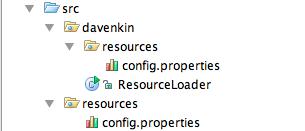 该工程里有两个resources文件夹,一个位于davenkin文件夹下,一个直接位于src文件夹下。第一个resources文件夹下有一个config.properties文件,其内容为: