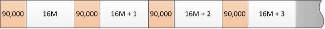 所以前面的示例代码会造成LOH变成下面这个样子,当后要分配16M + N的内存时,因为前面已经没有任何一块连续区域满足要求时,所以会引发OutOfMemoryExceptiojn异常。