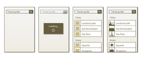 另外一个典型的情景是应用刚刚启动的时候。首先显示一张适合该应用风格和布局的图片,会降低用户对加载时间的感知;同时配合loading动画提示一起使用的话,效果会更好。