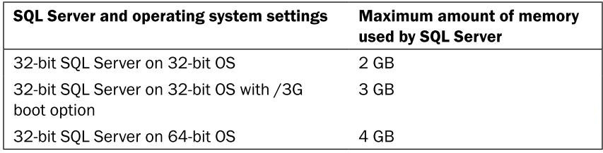 所有的设置都储存在SQLServer的buffer pool中。如果你使用32位系统,你的SQLServer不能使用超过3G的内存。不管你有多少可用内存在服务器上。除非开启了AWE和PAE。