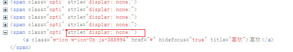 当Xpath可以匹配到多个页面元素的时候,Selenium默认是抓取第一个的。代码中的xpath String sLikeButtonXpath = "//div[@id='main']//a[@title='喜欢']";不具有性,定位到的是页面上所有匹配这个xpath的喜欢元素,其实取到的还是第一篇日志的“喜欢”元素,而这个喜欢元素在 html代码中被隐藏了,如下: