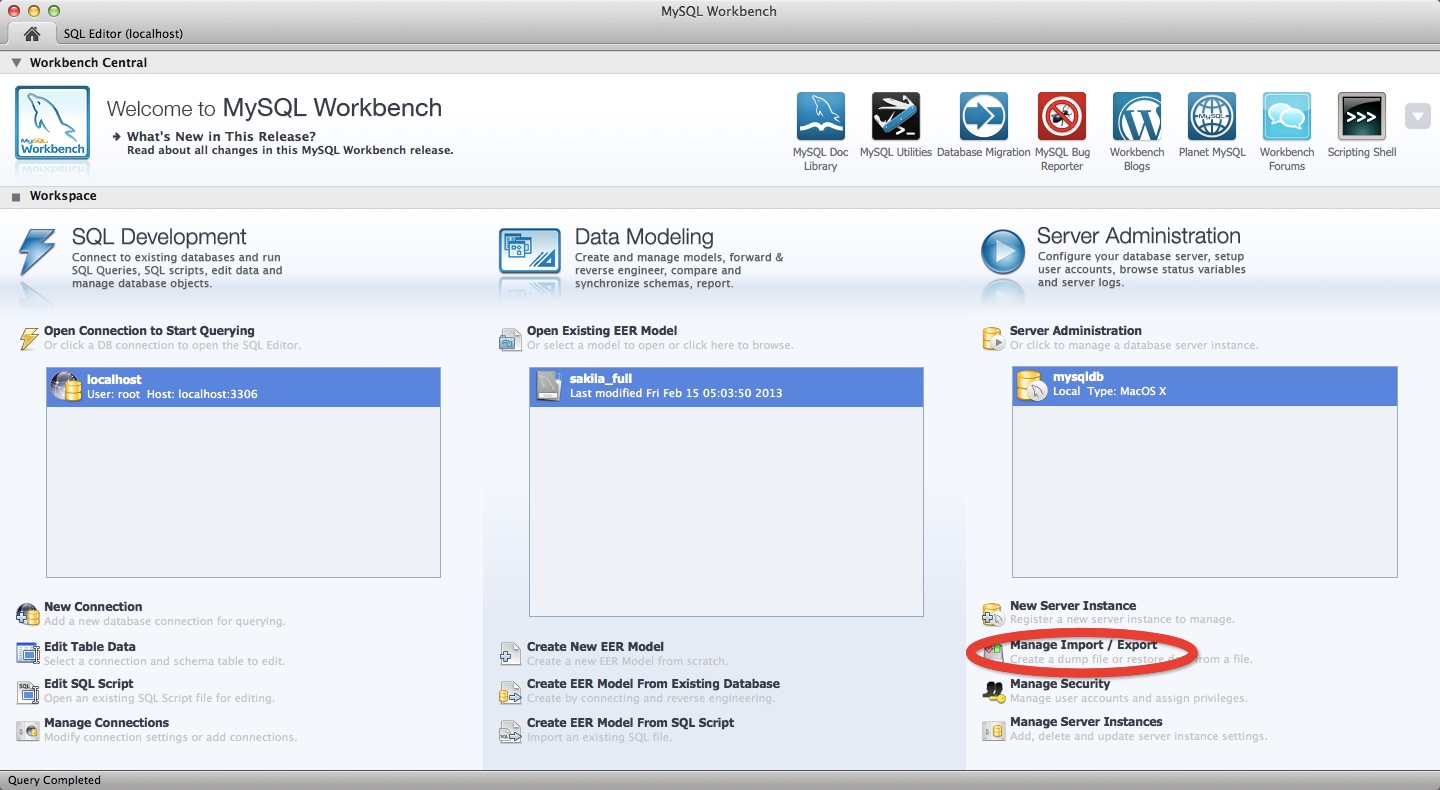 先说明一下自己的环境:Mac OS X 10.8.3,MySQL Community Server 5.6.10,MySQL Workbench 5.2.47。