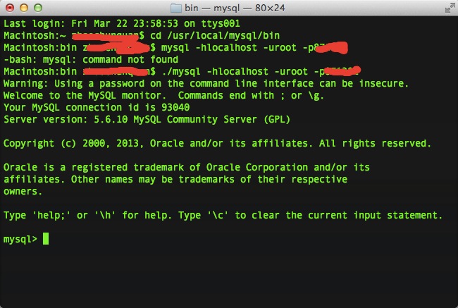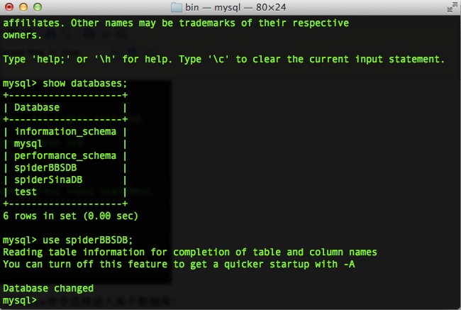 2、到达bin目录后,可以ls -l命令看看当前目录有哪些程序可以用,这里先用mysql,命令格式为: