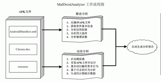 关于apk文件及MalDroidAnalyzer的工作流程如下图所示: