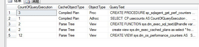 2、检查在运行了上面语句后是否有计划缓存,再次执行之前查询计划缓存的语句: