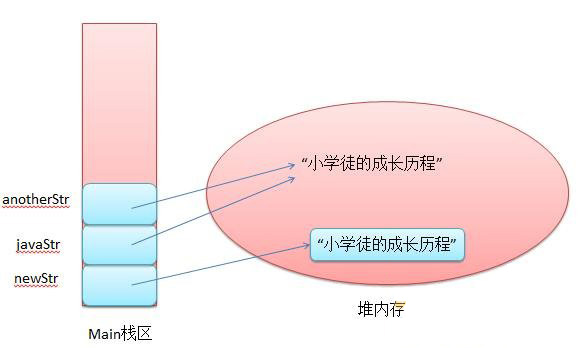 //所以,anotherStr也指向字符串缓存池中的"小学徒的成长历程"字符串