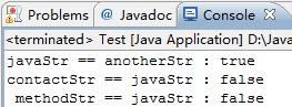 System.out.println("contactStr == javaStr : " + (contactStr == javaStr));