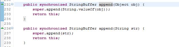 他们之间的区别在于StringBuffer是线程安全的,也是说StringBuffer类里绝大部分方法都增加了synchronized修饰符,这样降低了该方法的执行效率,所以在没有多线程的环境下,推荐使用StringBuilder。