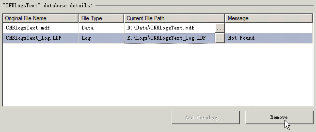 5、如果日志文件需要存放在另外的路径,要再通过Detach/Attach进行日志文件的移动操作。