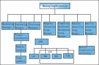 以上是A公司(同时也是印度大多数规范化的软件公司)的组织结构和项目组结构。可以看出,A公司的组织结构非常清晰,各个部门分类非常细,任务明确,软件生产的每一个步骤都有专门的部门、专门的人员负责,从基础的开发人员到负责统领全局的总经理,层层管理,沟通渠道畅通。而在我国,管理的不规范往往首先体现在公司的组织结构上,集中表现为部门的缺失和管理的交叉上。我国的软件公司,大部分规模较小,开发人员超过100人的公司很少。在印度,软件公司无论大小,都是“麻雀虽小,五脏俱全”,绝不会因为公司的规模大小而改变合理的组织结构。因此笔者认为,国内的软件企业要想有效地保障产品质量,首先要在构架合理的组织结构上下功夫,这如同盖高楼首先要打好地基一样,地基不打牢,结构不合理,其他方面再下功夫也是徒劳。有人说,因为国内软件企业规模小,所以造成结构设置的欠缺,但笔者认为恰恰是因为没有建立一个规范化的组织结构,才会使软件产品质量不保,进而严重影响了企业的发展扩大。