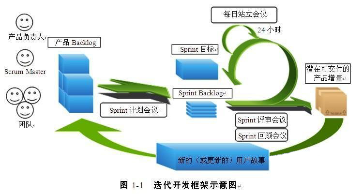 在敏捷开发模式中,迭代开发和增量开发的策略通常会被同时使用,并统称为迭代开发,迭代开发框架如图1-1所示。
