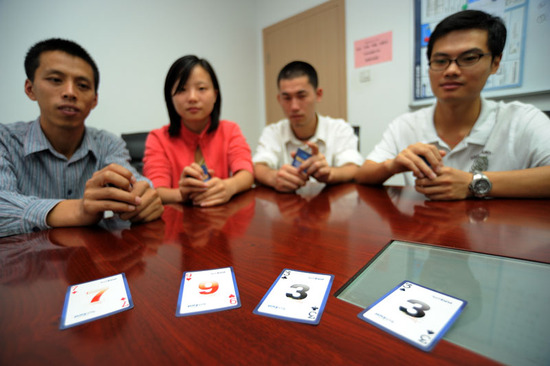 选择牌时,牌中央的数字和符号代表了你的估算值,受到纸牌数量的限制,牌面数字不可能包含了全部的可能性,遇到特殊的数字时,我们可以采取组合牌的形式,比如您的估算值为3.5,那么我们可以使用一张3,再加上一张1/2来表示3.5。