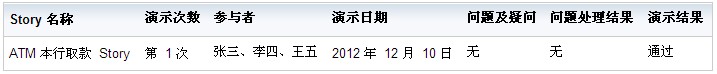 Story 演示的结果要由测试人员及时登记并提交到配置库上,供后面迭代回顾时对 Story 演示活动进行分析与总结,以便对下一个迭代的 Story 演示活动提出改进措施。同时,通过比较两次迭代的 Story 演示结果可以明确开发质量是否有所提升,开发人员是否在进步。