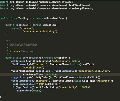 Athrun的实现和Robotium类似,提供的接口也很多,并且支持webview,也可实现持续集成。对于我们的产品而言,满足自动化的需求。由于工具开源,在今后需求不满足的时候我们也可以在该工具的基础上做一些封装。所以终选择了Athrun来实现笔记和词典的GUI自动化。