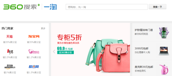 昨日,360搜索悄然上线了新服务——购物搜索(360.etao.com),合作方选择了阿里巴巴旗下的一淘。令人感到意外的是,这个位于360搜索首页的一级服务,并未与地图、软件、音乐等同类服务一样采用360的二级域名,而是将域名直接指向一淘网。