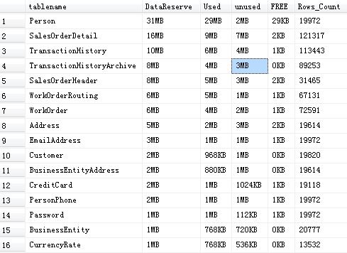 select * from ## order by convert(INT,replace(保留空间,"KB","")) desc drop table ##'