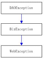 了解了java的异常体系后,我们设计一下web框架的异常处理格式。在以往EJB时代的J2ee系统,一般是标准的三层架构:web层、业务逻辑层、数据访问层,并且每一层都分别部署在不同的机器集群中。这样我们的异常一般分为三个,WebException、BizException、DAOException分别映射到web层、业务逻辑层、数据访问层。并且这些异常都要设计的串行化可以跨机器传递生成异常链。这样的好处是看到异常链知道从哪儿抛出来的错误,比较清晰明了。