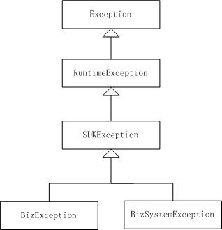 针对这些点,我的想法是开发可以使用三个类:SDKException、BizException、BizSystemException。SDKException是处理的基础类,可以在里面封装一些异常处理的基本函数。BizException是业务逻辑处理异常,一般这类异常是不需要记录log,只是展示给页面显示并提示给用户。如你的用户名、密码为空等错误。BizSystemException是业务系统异常,这类异常一般需要捕捉并记录log,比如数据库的主键冲突、sql语句错误等。按照三层架构的话,我们不可能对每一层都捕捉并且记录log,会造成重复log。可以从DAO层把捕捉到的数据库异常转换为BizSystemException抛出,如果有BizException也抛出。业务逻辑层对于BizSystemException、BizException不处理直接抛出。所有处理都在web层进行集中处理,如果是BizException,根据错误码和错误消息显示给用户对应的页面和错误消息。如果是BizSystemException告知用户系统错误,并把错误结果记入log。如果是其他异常和BizSystemException一致。这样减少了异常处理的复杂度,开发也不用关心什么检查异常,运行时异常。