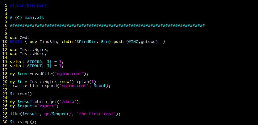 下列代码功能是配置Nginx的启动配置,进行Nginx服务器的启动,制定测试用例计划,启动后验证提供的服务的正确性,关闭服务器。初略的解释为代码的12行声明使用Test::Nginx模块,18行通过一个自定义的读取文件的方法,将配置文件值存储于在变量$conf中。20行通过write_file_expand()函数将该nginx配置文件存在零时文件夹的一级目录下。25行通过http_get()方法获取服务器的服务。30行关闭服务器。