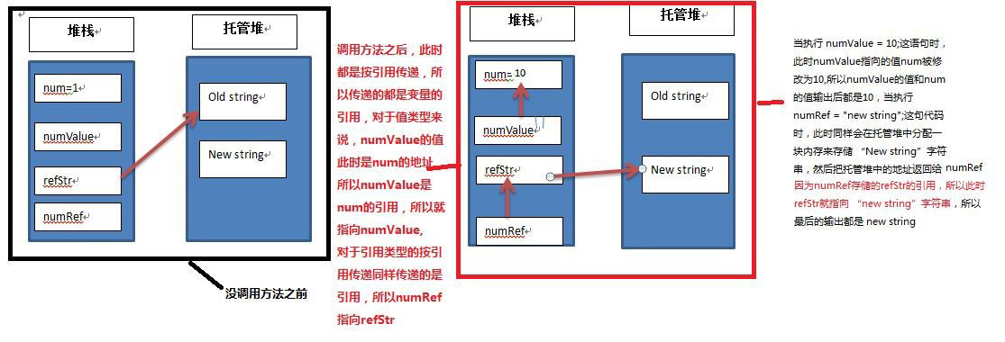 方法的定义和方法调用都必须同时显式使用ref或out,否则会出现编译错误
