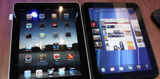 右边是曾经有机会翻盘的TouchPad(搭载WebOS),左为iPad