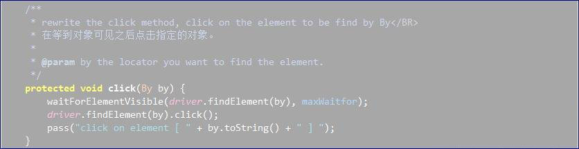 第一层的特性抽取可以通过测试框架和工具来完成,简易的二次封装是保证测试书写低复杂度和保证测试脚本健壮性的好办法,如同图中对click方法的简单封装一样。这件事情只需要一个像笔者一样略微熟悉测试工具和被测应用特性的测试工程师即可完成。所以这个活动的成本不会太高,而带来的效益却还是很不错的,至少可以给不熟悉测试工具的脚本开发者一段很长的学习缓冲期。