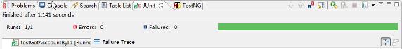 在 Eclipse 的 Junit 视图中,我们可以看到如下的结果: