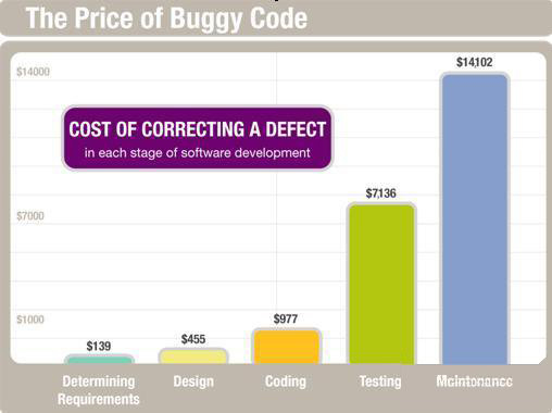 根据国际上的经验,在测试阶段修复一个bug的时间往往要比在代码编写阶段要多出15到75倍。