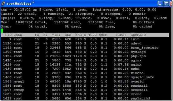 第一行的load average即为系统负载,是说整个VPS资源占用情况,如果正常建站,一般很少有超过5的时候;