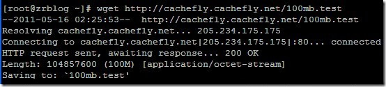 命令:wget http://cachefly.cachefly.net/100mb.test