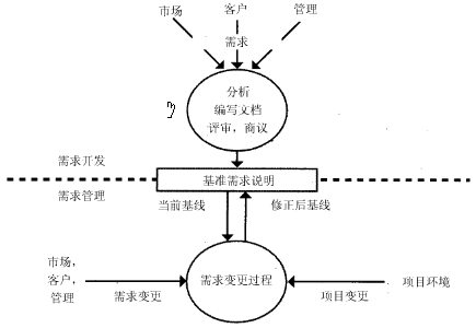 由图1-3中可以从另一个角度来看需求开发和需求管理之间的区别: