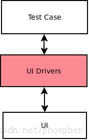 在软件设计界有一句很经典的话:“大部分的软件耦合问题,都可以通过在中间加一层解决”。所谓的客户端驱动模式,也是通过在中间加一层来解决测试脚本与系统UI高耦合的问题的,我们姑且把中间的这层成为客户端驱动层。下图是使用客户端驱动模式设计的自动化测试的架构图: