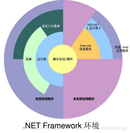 .NET Framework 包括公共语言运行库(CLR:common language runtime)和框架类库(FCL:.NET Framework Class Library)。也许好多朋友会以为这两者是平级的关系,其实不然。公共语言运行库比框架类库更接近底层,后者依赖于前者。让大家看一下下图明白了。