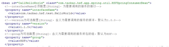 一个淘宝的应用,依赖几十个其他应用提供的服务是很正常的现象。依赖系统之间使用HSF服务(淘宝内部的分布式的服务框架,RPC解决方案)来进行相互调用,在调用方进行如下的配置,可以调用远程的hsf服务.