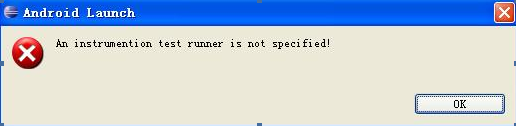 在Instrumentation runner后的列表框选项中,我们看到android.test.InstrmentationTestRunner,并处于当前选择状态。如果这个没 有选择框中没有任何选项,说明AndroidManifest.xml配置有问题。