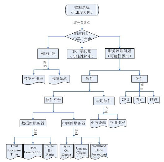 性能出现故障一般是由于性能指标未能满足设计要求。性能指标主要表现在两个方面,一是平均交易响应时间,二是资源占用率。交易平均响应时间不满足设计要求情况下,那么将以上图的故障定位树入手进行分析。