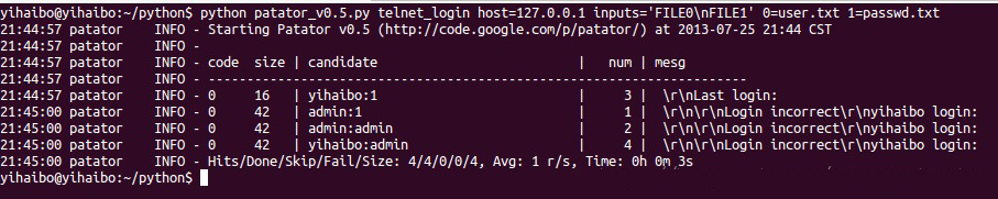 但我们使用的是Patator,Patator本身使用Python开发,新版本也4000行左右,可以说小到,这主要多亏了Python库的丰富和强大。