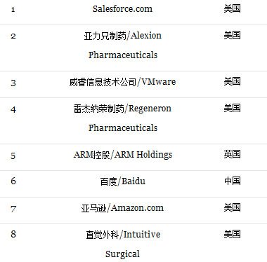 在这份榜单中,美国成为大赢家,共有39家美国公司入围,中国内地有5家公司上榜。其中,腾讯和百度是榜单上仅有的两家中国科技企业。