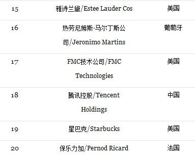 以下为“2013年全球具创新力的100强企业”前20名: