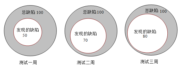 在人员一定的情况下,投入的时间越多,发现的缺陷越多。但有一个规律,越到后期发现的新缺陷越少。假设软件总缺陷为100个,第一周发现50个问题,第二新发现20个,第二周可能只发现10个新缺陷。而且一个必然的结果是,测试不可能发现所有的缺陷。