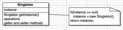 正如你在上图中所看到的,这不是单例模式的完整部分。此图中单例类保持了一个对的单例实例的静态引用,并且会从静态getInstance()方法中返回对那个实例的引用。