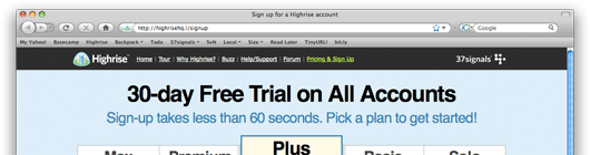 WritingDecisions:HeadlineTestsontheHighriseSign-UpPage37Signals测试他们的价格页面的标题。终发现,“30-DayFreeTrialonAllAccounts“比原来的“StartaHighriseAccount.“多产生30%以上的订单。