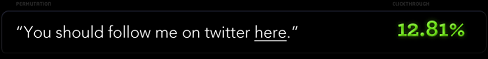“You Should Follow Me on Twitter Here” (Dustin Curtis) 这是一个用来测试召唤用户在Twitter上关注自己的试验。. Dustin 发现提示文字是“You should follow me on Twitter here” 的效果是“I’m on Twitter.” 173%