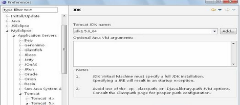 3:在myeclipse中添加javarebel:打开MyeEclispe->Window->Prefrence窗口,找到设置tomcat位置下JDK设置。如图: