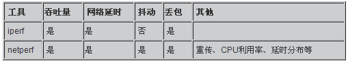 大家熟知的,常用的开源网络性能测试工具有两个:iperf 和 netperf,这两种工具都是可以测试TCP协议和UDP协议的,从可测试的网络性能指标,我们对两种工具进行下对比: