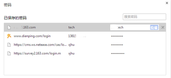谷歌Chrome实际上会询问用户是否要存储的密码,这会使用户下次登录时更加容易。如果选择该选项,用户会在设置选项中保存密码列表,这些密码甚至可以切换到在屏幕上直接显示明文。埃利奥特的博客文章中指出,如果用户访问chrome://settings/passwords用户可以浏览所有这些密码。用户也可以选择“设置”,点击“显示高级设置”,然后在“密码和表单”选项点击“管理已保存的密码”,以此也可以找到明文密码。