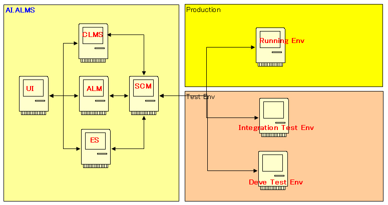 1.客户端已不需要在分门别类,任何一个客户端只要能连接到AI.ALMS并有相应的权限,可以充当任何角色。是AI.ALMS的构成。用户可以通过各种Web浏览器访问AI. ALMS。当开发者需要访问或更新源代码时,可以通过这些SCM的客户端在AI.ALMS提供的配置信息下操作。AI. AI. ALMS还提供了访问各个环境的远程登录工具,该工具结合Telnet,FTP,微软的Remote Desktop Connection的功能。