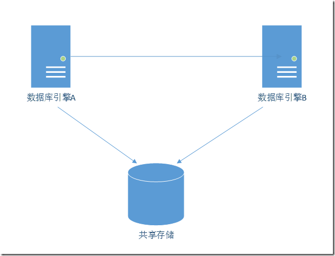 Share-Disk架构是通过多个服务器节点共享一个存储来实现数据库集群,两台机器简单的Share-Disk架构如图1所示。