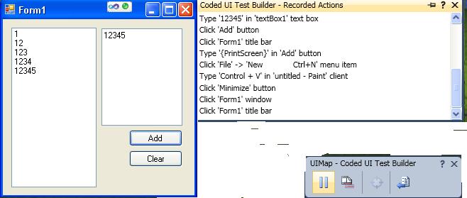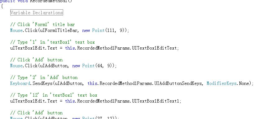 至此,一个简单的Winform单元测试完成了。对于Webform的录制过程和Winform一样,需要注意的是在录制之前一定要先把测试的网站打开,不能只打开IE。