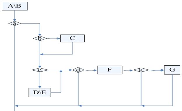上面这个流程图看上去是不是清晰很多,确实如此,从心理学的角度来讲,正常人的思维是很难接受一个横向很复杂的事物。而且上面的流程图也更规范一点,所以建议大家以后这样画流程图。下图是作进一步的改进:这个流程图是不是更方便你设计用例呢,尤其是用路径分析法,是不是很方便能找出其中的路径。